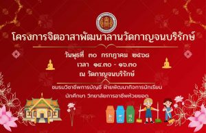 โครงการจิตอาสาพัฒนาลานวัดกาญจนบริรักษ์ ณ วัดกาญจนบริรักษ์ วันพุธที่ ๓๐ กรกฎาคม ๒๕๖๘ เวลา ๑๔.๓๐-๑๖.๓๐