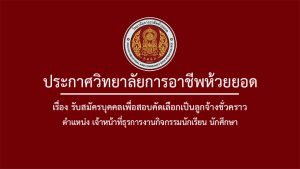 ประกาศรายชื่อผู้ผ่านการคัดเลือกเข้าศึกษาต่อ ปวส.โควตา 2569