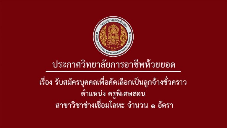 รับสมัครบุคคลเพื่อสอบคัดเลือกเป็นลูกจ้างชั่วคราว ตำแหน่ง ครูพิเศษสอน ประจำแผนกวิชาช่างเชื่อมโลหะ จำนวน 1 อัตรา