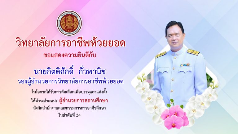 วิทยาลัยการอาชีพห้วยยอด ขอแสดงความยินดีกับ นายกิตติศักดิ์ กั่วพานิช
