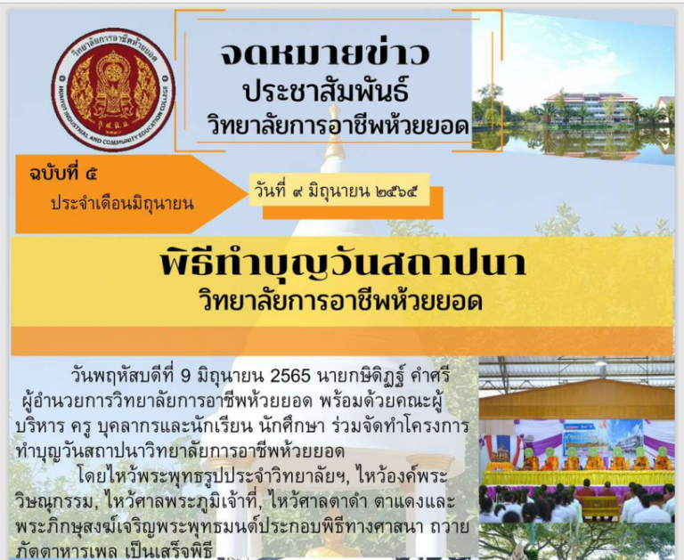 พิธีทำบุญวันสถาปนาวิทยาลัยการอาชีพห้วยยอด 9 มิ.ย.65