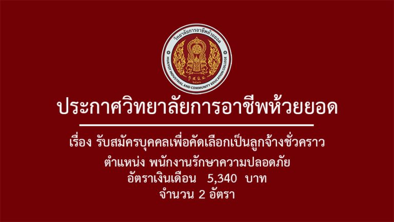 รับสมัครบุคคลเพื่อเลือกสรรเป็นลูกจ้างชั่วคราว ตำแหน่ง พนักงานรักษาความปลอดภัย